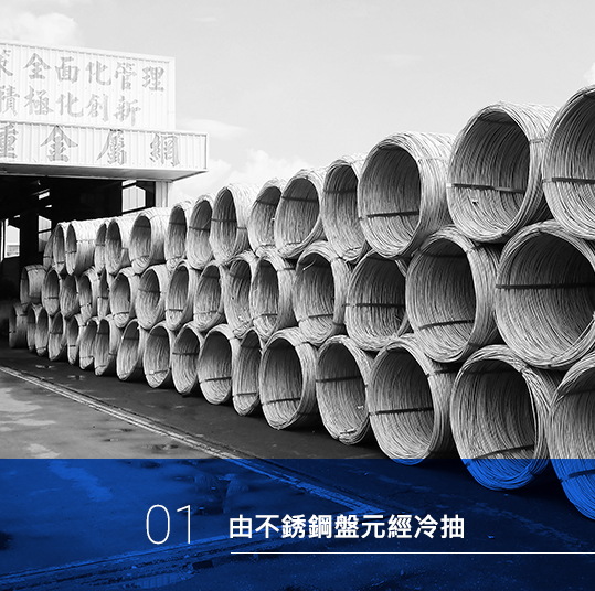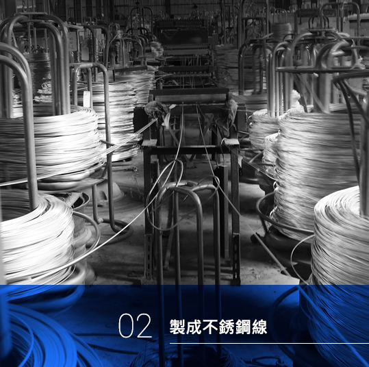 今騰工業不斷的研究發展創新,也不斷的擴大經營領域,我們每年生產超過7000噸的不銹鋼線材 (線徑13m/m~0.1m/m)可充份供應下游的螺絲、彈簧 、金屬網、鋼索、置物架、衛浴五金等加工製造業及建築業使用。